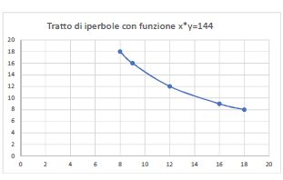 Ad esempio, considerando tutte le coppie ordinate di numeri il cui prodotto dà 144 e costruendone il grafico otteniamo questa curva: