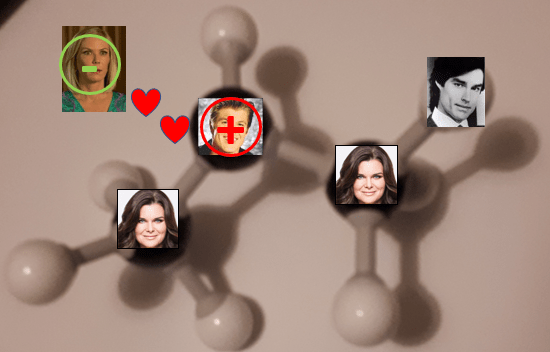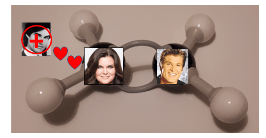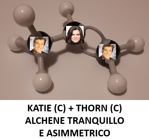 Poi che fa? TAC, come se niente fosse gli ruba un elettrone! Allora Katie si trova costretta a raffreddare i rapporti con Thorn, rompendo il doppio legame che ha con lui e non solo, a causa della positività di Ridge si trova costretta a togliere un elettrone a Thorn, facendolo diventare positivo, cioè un carbocatione!