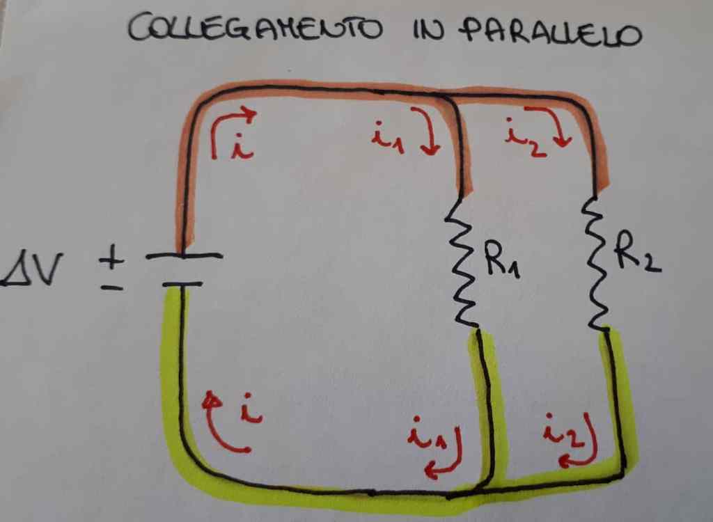 Un circuito in cui i conduttori sono collegati in parallelo, invece, è caratterizzato dal fatto che i conduttori hanno tutti le estremità connesse tra loro; di conseguenza essi sono sottoposti alla stessa differenza di potenziale.