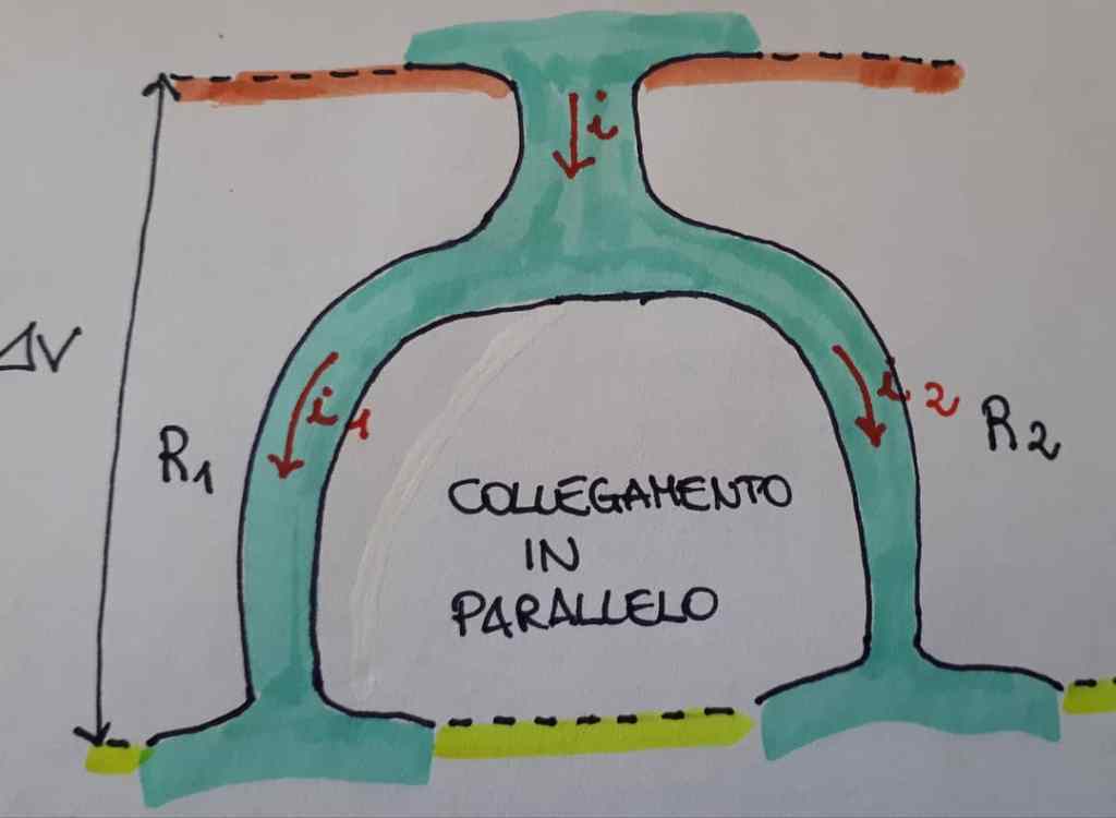 Un collegamento in parallelo può essere paragonato a una cascata che si divide in più rivoli vista di fronte: