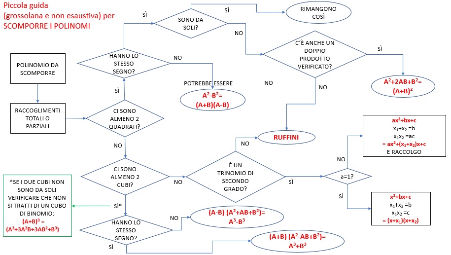 La mappa per le scomposizioni, che non è esaustiva e non è un flow chart, ma vuole essere solo una piccola guida, si può scaricare qui:
