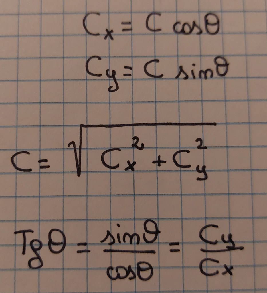 Una volta individuate le componenti ortogonali possiamo procedere calcolando modulo e angolo così.