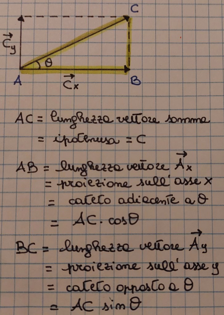 Se scompongo il vettore C nelle sue componenti Cx e Cy, vuol dire che facendo la somma vettoriale delle componenti ottengo lo stesso vettore.