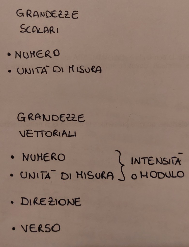 I vettori sono grandezze più “complete” rispetto agli scalari, poiché sono dotati non solo di un modulo (un numero con unità di misura o meno, che viene detto anche intensità o magnitudo), ma anche di una direzione (l’angolazione della retta su cui giacciono) e da un verso (da una o dall’altra parte della direzione).