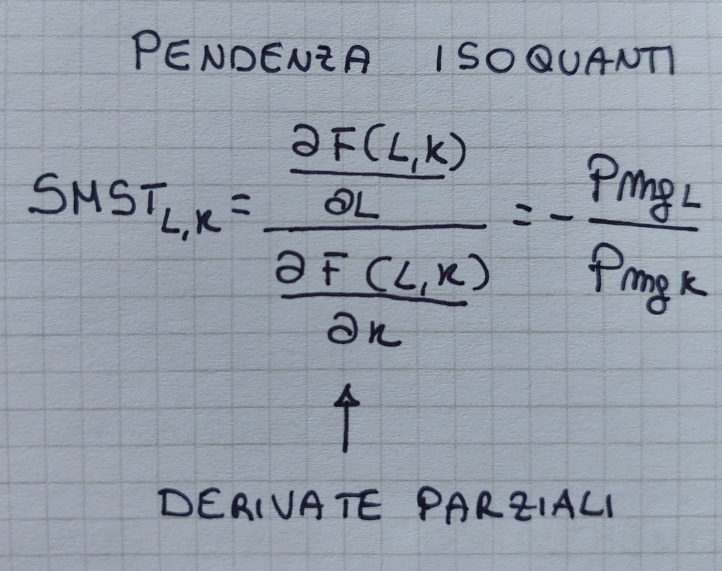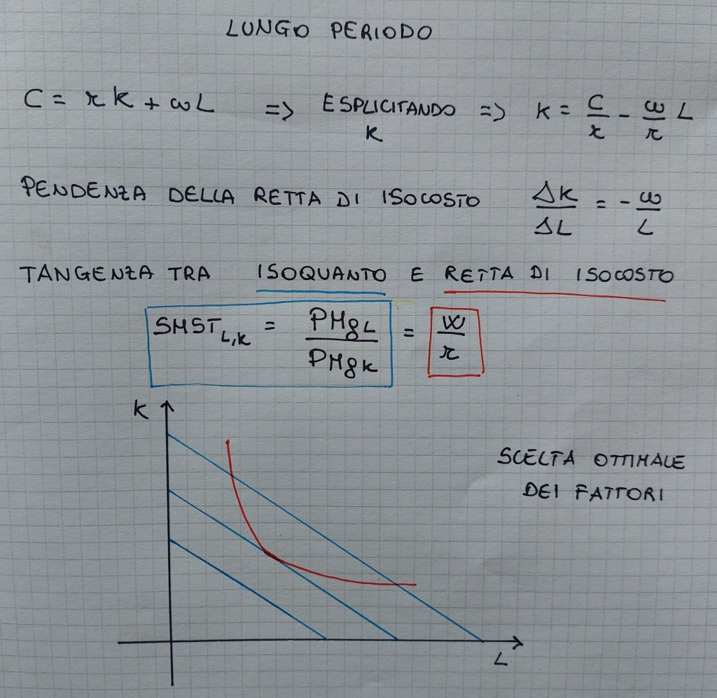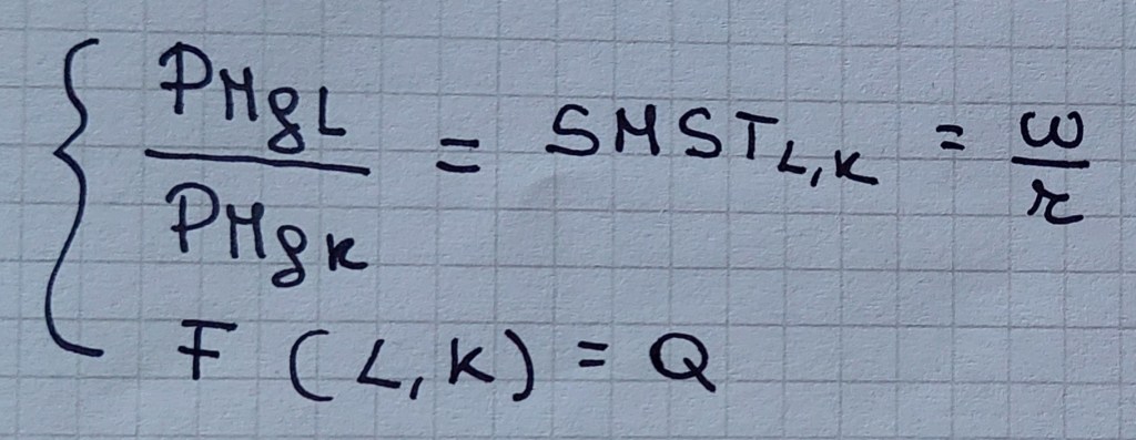 La tangenza si ottiene mettendo a sistema la tangenza tra isoquanto e isocosto e la funzione di produzione.