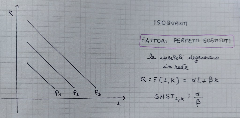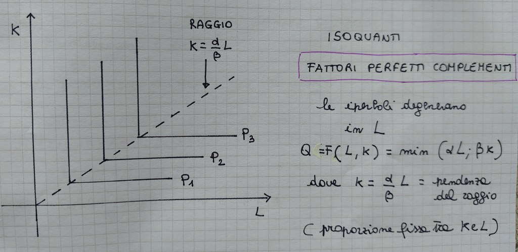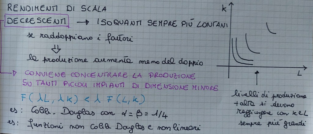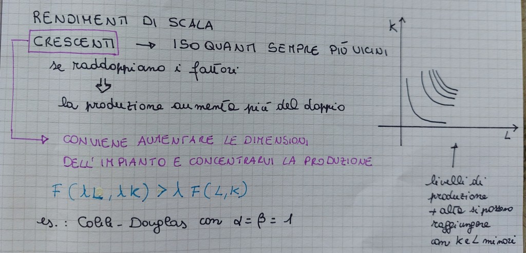 A seconda di quanto sono distanti i vari isoquanti si capisce se conviene aumentare i fattori L e K concentrando la produzione in un solo stabilimento o se conviene distribuire la produzione in più stabilimenti di minori dimensioni.