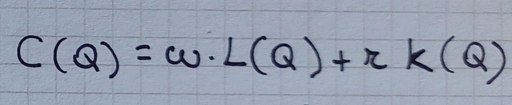 I costi si compongono di quelli dovuti al capitale e quelli dovuti alla forza lavoro e si intendono in genere di breve periodo quando si considera il fattore K fisso, di lungo periodo quando sia L che K possono variare.