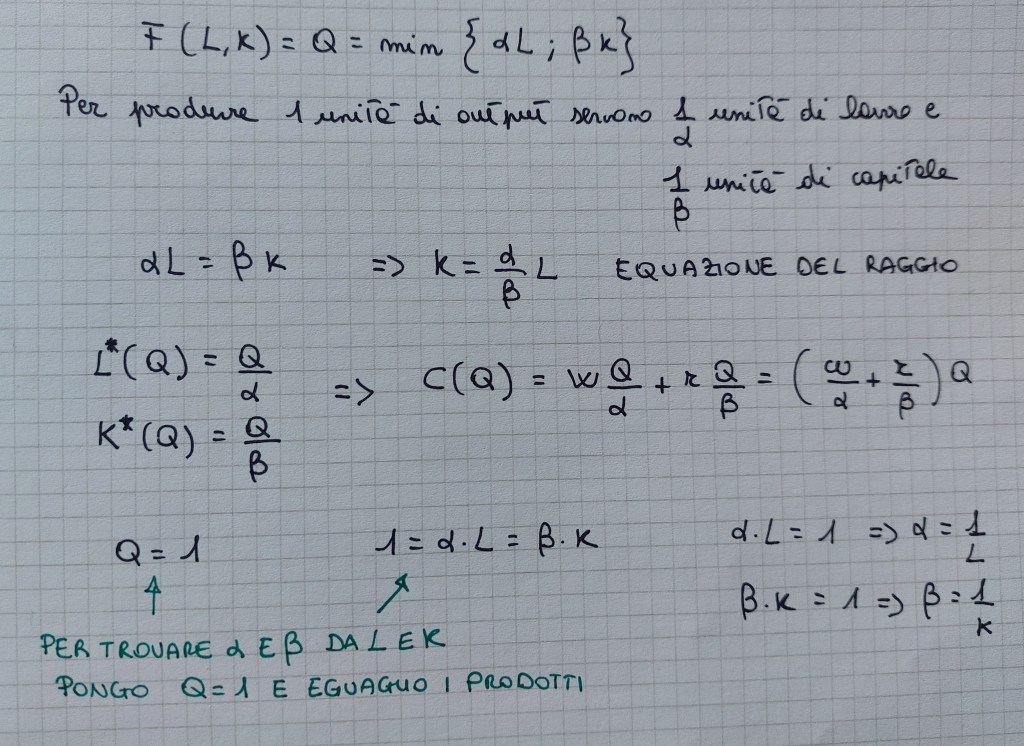 Il capitale va moltiplicato per il fattore r e il lavoro per il fattore w.