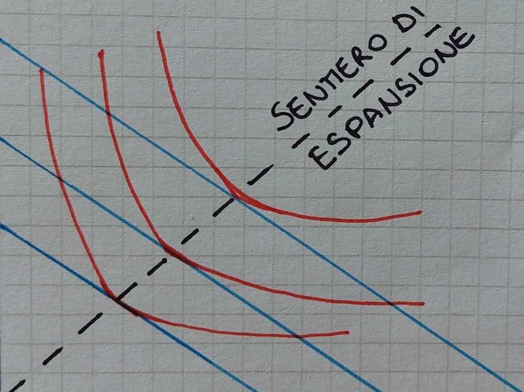 L’aumentare delle dimensioni della produzione e dei costi procede di pari passo secondo il sentiero di espansione.