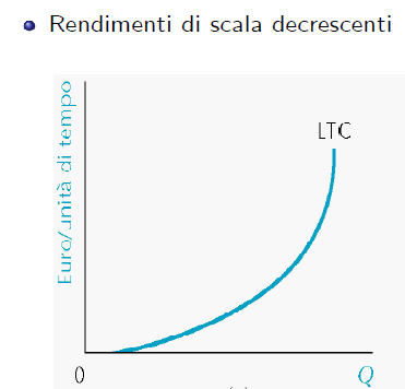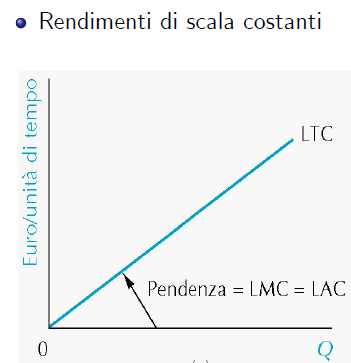 Anche i costi possono denotare rendimenti di scala costanti, crescenti o decrescenti.