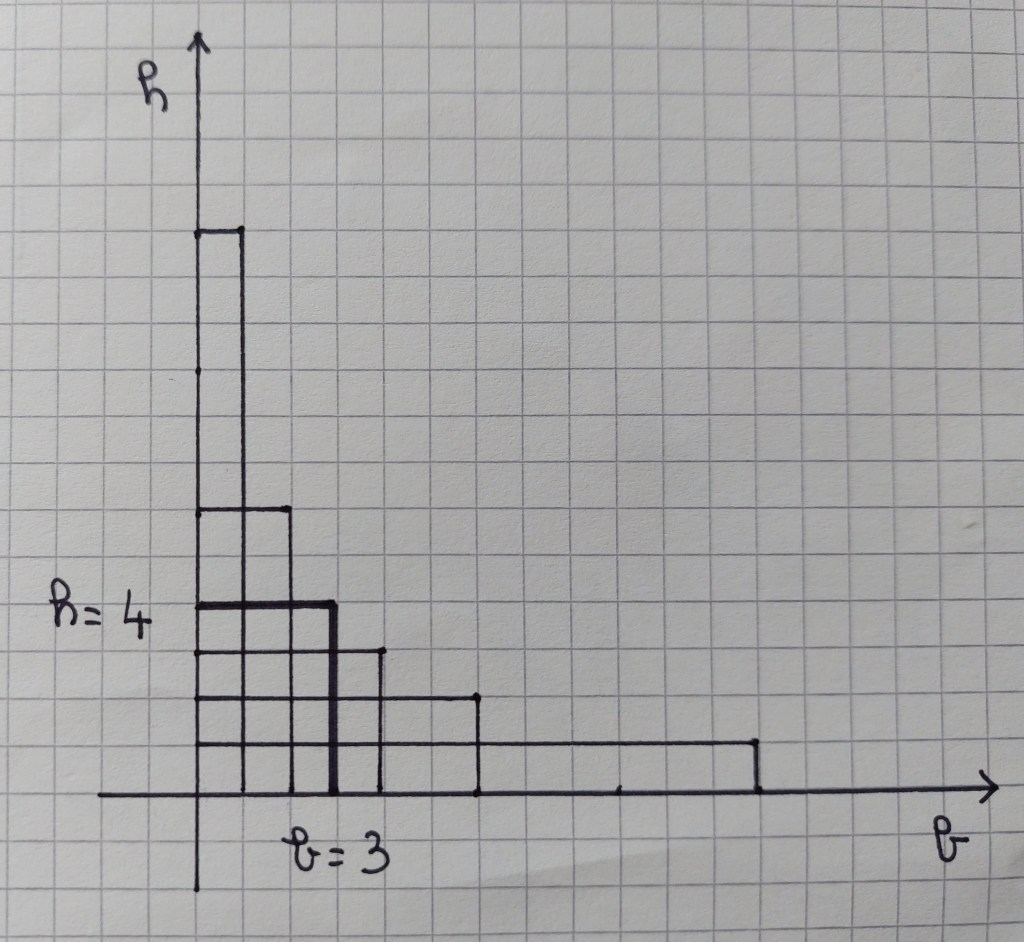 Se congiungiamo i punti estremi dei rettangoli formati riscontriamo la forma tipica di ogni grafico di proporzionalità inversa: l’iperbole.