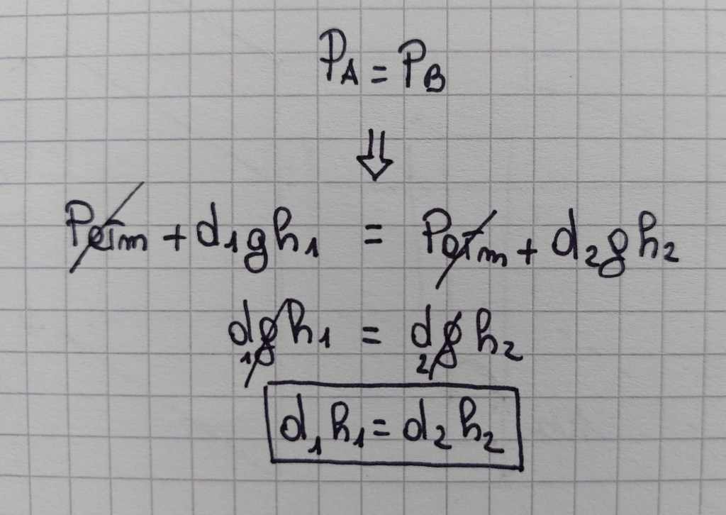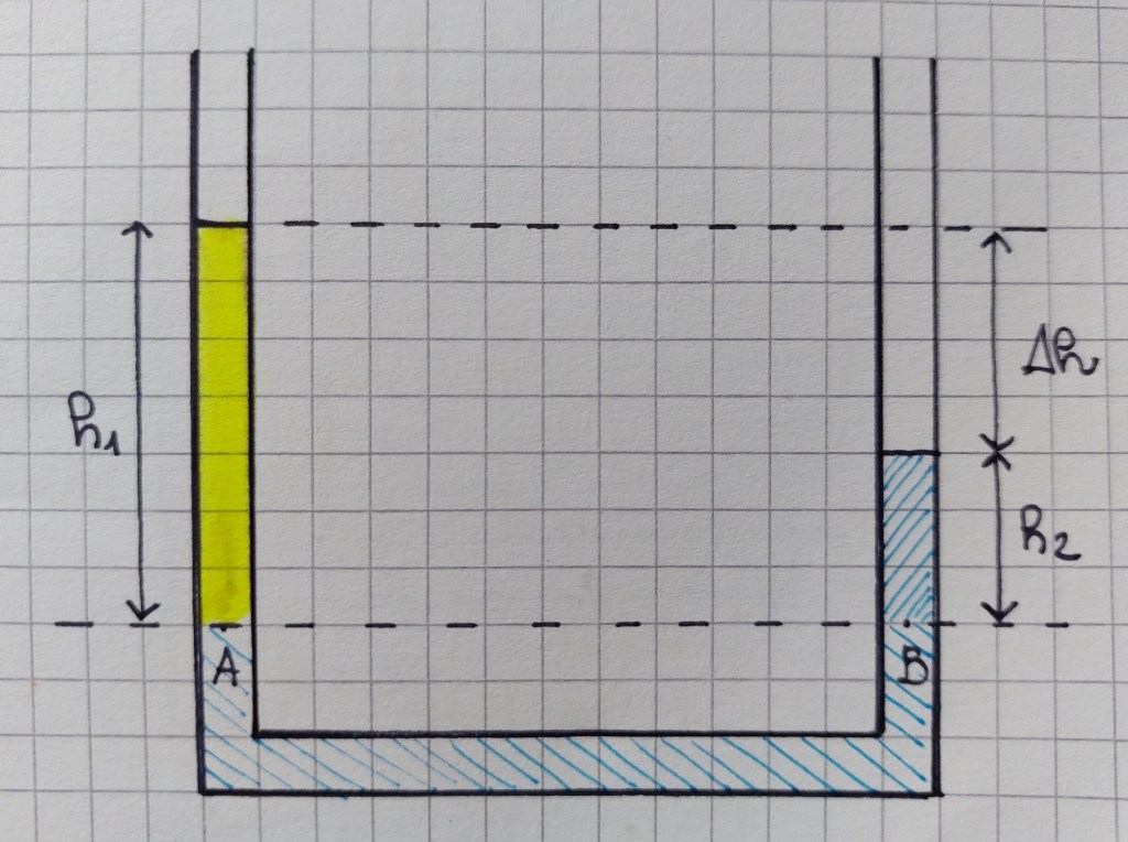 Approfondendo le conseguenze della legge di Stevino, esaminiamo ora cosa succede nel caso di vasi comunicanti contenenti fluidi con diversa densità e non miscibili, essi si disporranno in modo da rispettare la legge secondo la quale la pressione alla base deve essere uguale nei due casi.