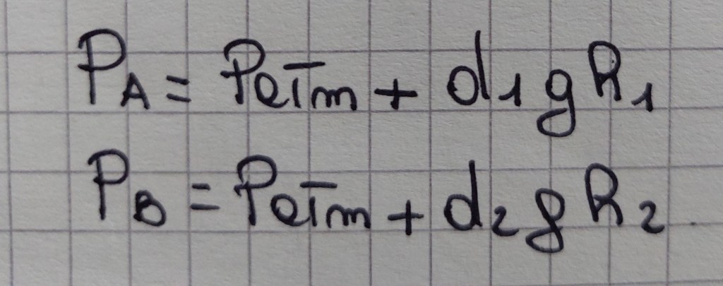 In questo caso la pressione viene calcolata mediante la legge di Stevino, che esprime la pressione come il prodotto di densità, accelerazione gravitazionale e altezza del liquido sovrastante, a cui va aggiunta la pressione atmosferica se sopra al fluido c’è l’aria.