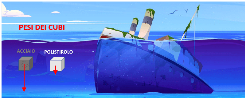 Il risultato sarà che il cubo di acciaio affonderà, mentre il cubo di polistirolo galleggerà.