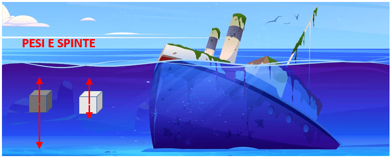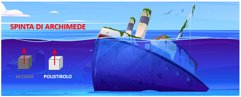 Quindi, la spinta di Archimede, anche se può essere chiamata anche spinta di galleggiamento, non è sempre sufficiente a contrastare la forza peso del corpo e quindi a far sì che questo galleggi!