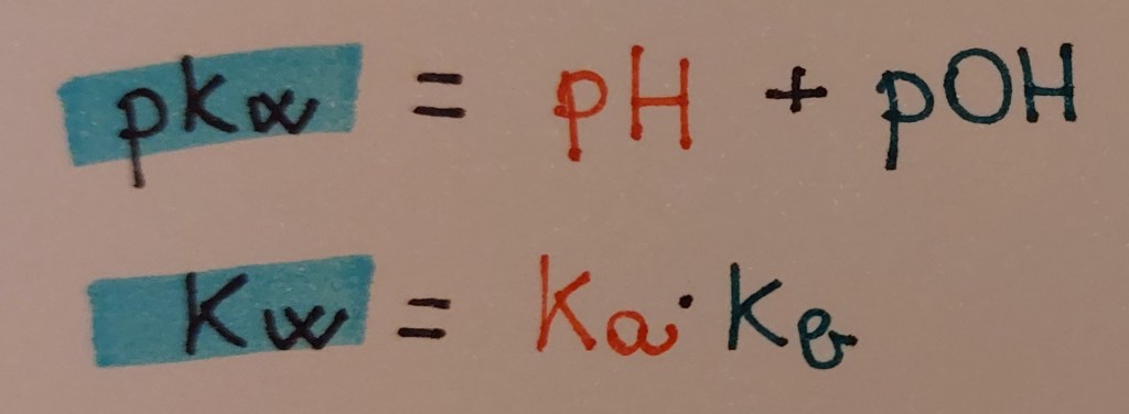 Attenzione: le concentrazioni e le costanti di equilibrio si moltiplicano, mentre i pH, pOH e i pK corrispondenti si sommano, secondo le proprietà delle potenze, perché essendo dei logaritmi sono degli esponenti.