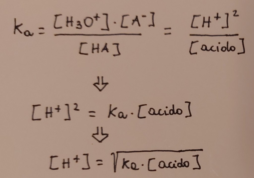 l pH si calcola a partire dalla concentrazione dell’acido, che si assume uguale alla concentrazione degli ioni H+.