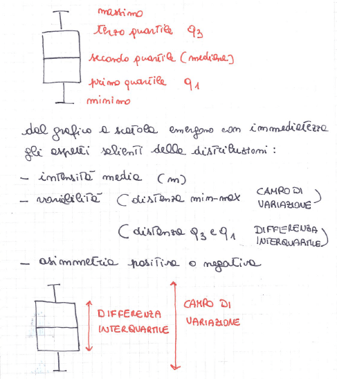 • differenza interquartile = la differenza tra il terzo e il primo quartile della distribuzione
