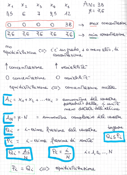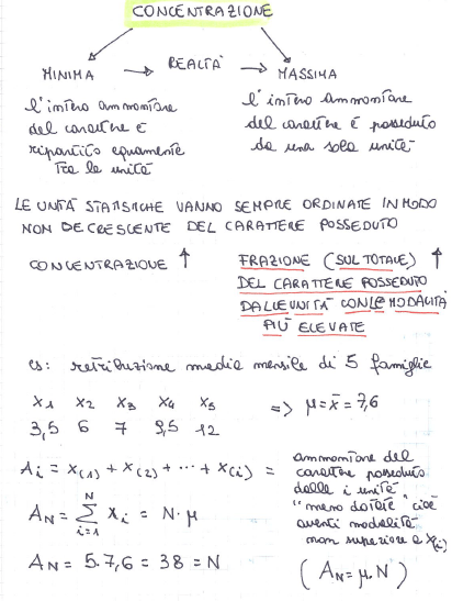 concentrazione = concetto che si usa con i caratteri quantitativi per indicare come è ripartito il carattere tra le varie unità