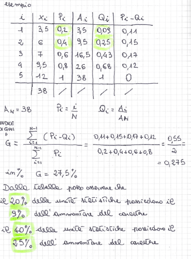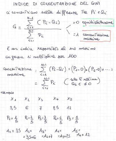 • indici di disuguaglianza o differenze medie = sono basati sulle differenze tra tutti i termini della distribuzione presi due a due