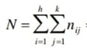frequenza congiunta = nij = numero delle unità del sottoinsieme xi∩yj, cioè in cui si verificano contemporaneamente le modalità xi e le modalità yj. La doppia sommatoria di tutte le frequenze congiunte al variare di i da 1 a h e di j da 1 a k restituisce N come risultato.