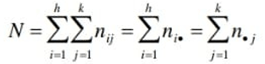 distribuzione marginale delle N unità statistiche secondo il carattere X è data da tutte le ni0, al variare di i da 1 ad h (n10, n20,…,ni0,…,nh0), in cui ognuna delle ni0 è data dalla somma di tutte le nij ottenuta tenendo fissa la i e facendo variare la j da 1 a k.