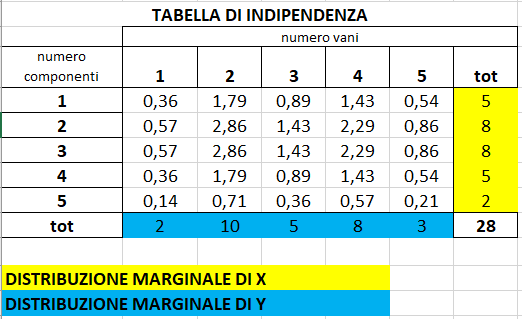tabella di indipendenza = si ottiene inserendo in ogni cella la