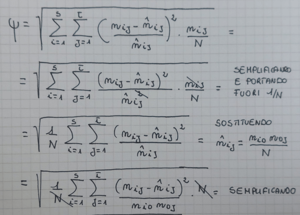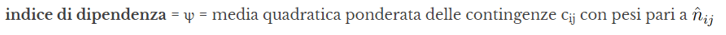 tabella di contingenza = tabella in cui si inseriscono le contingenze, che sono alla base di un indice di dipendenza ψ
