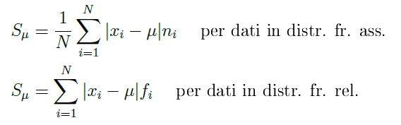• scostamento semplice medio = indice di variabilità dato dalla media aritmetica degli scarti dalla media aritmetica presi in valore assoluto
