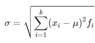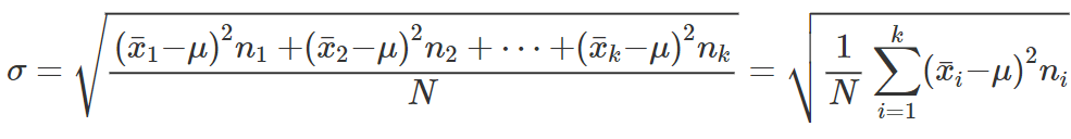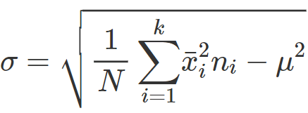 Le formule per il calcolo della varianza per distribuzioni di frequenze o per dati raggruppati in classi sono analoghe a quelle per la deviazione standard, ma senza radice quadrata