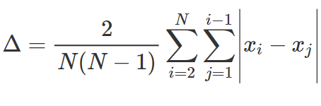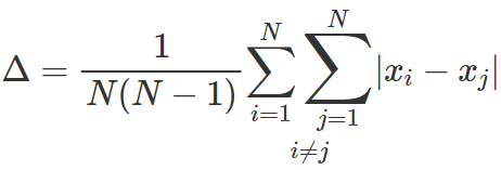 • differenza semplice media = la media aritmetica tra le N*(N-1) coppie di termini della distribuzione