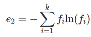 • Indice di entropia di Shannon = si calcola così (con fi = frequenze relative e ln (fi) = logaritmi naturali, cioè con base e=numero di Nepero, delle frequenze relative):