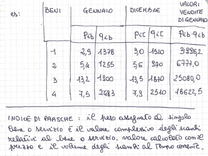 • numero indice di Paasche = media aritmetica ponderata utilizzando le quantità al tempo corrente. Ha tendenziosità negativa in caso di inflazione