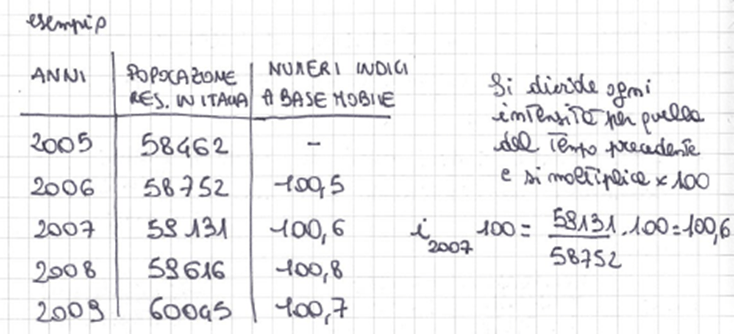 • numeri indici a base mobile