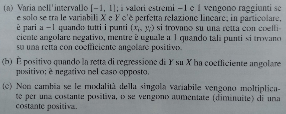 Il coefficiente di correlazione lineare di Bravais è caratterizzato dalle seguenti proprietà: