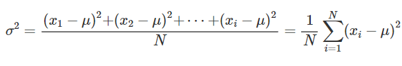 • varianza = media aritmetica dei quadrati degli scarti dei valori dalla loro media