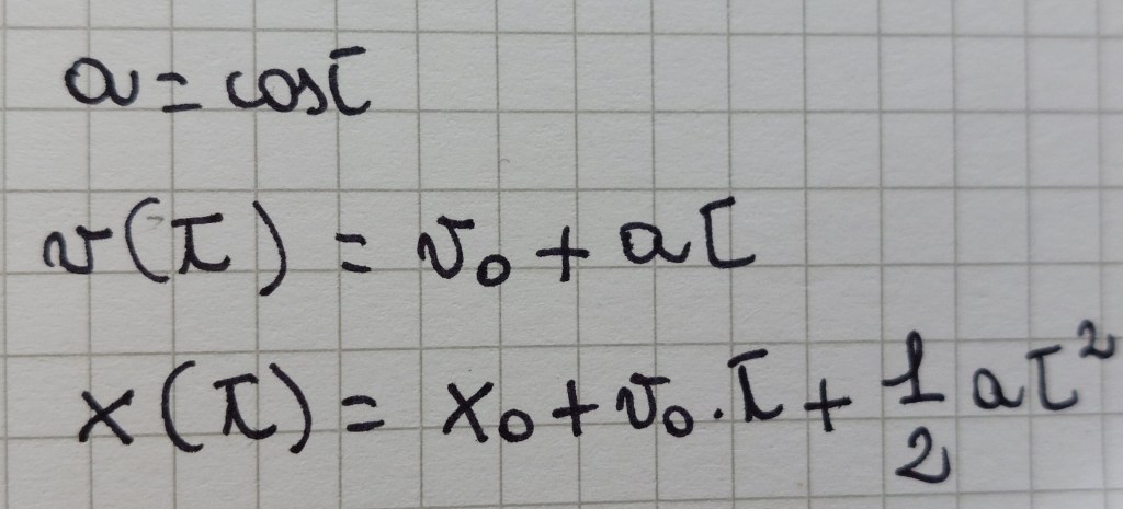I parametri che vi compaiono sono a (accelerazione, sempre costante), v0 (velocità iniziale) e x0 (posizione iniziale).