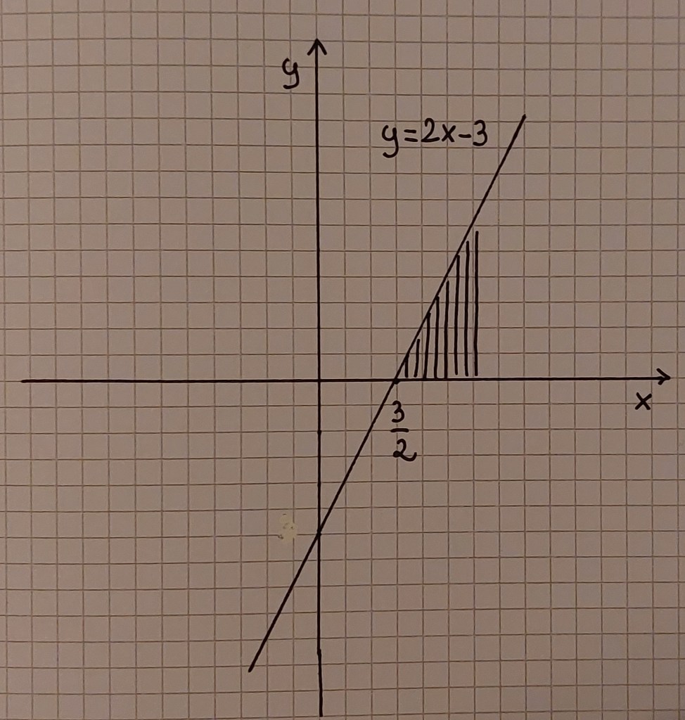 Il che graficamente corrisponde all’intervallo, illimitato a destra, dei valori delle x che si trovano a destra di 3/2.
