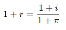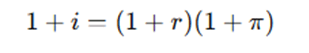 Per ricavare l’equazione di Fisher, partiamo dalla relazione tra il tasso di interesse nominale e reale in un contesto di inflazione: