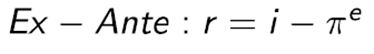- π è il tasso di inflazione (se è quello atteso in particolare è meglio specificare πe)