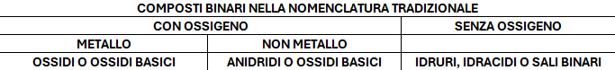 I composti ternari (sali che contengono ossigeno) si trovano anche nella parte centrale della tabella.