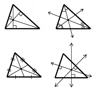 Nel triangolo equilatero tutti i punti coincidono, in quello isoscele si trovano tutti sulla stessa retta (la mediana=bisettrice=altezza=asse relativa al lato diverso dagli altri).